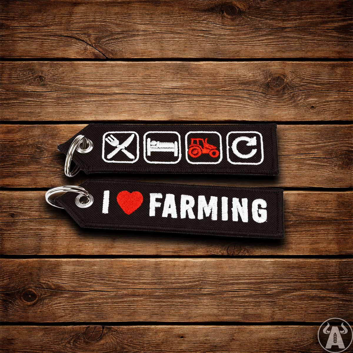 Z jednej strony masz napis „I ❤️ FARMING”, a z drugiej zestaw ikon, który idealnie opisuje codzienność: jeść, spać, łorać i od nowa. Dzięki swoim rozmiarom łatwo go złapać w rękawicach albo szybko znaleźć w kieszeni. No i wygląda tak, że pasuje i do kluczy, i do torby, i do plecaka.