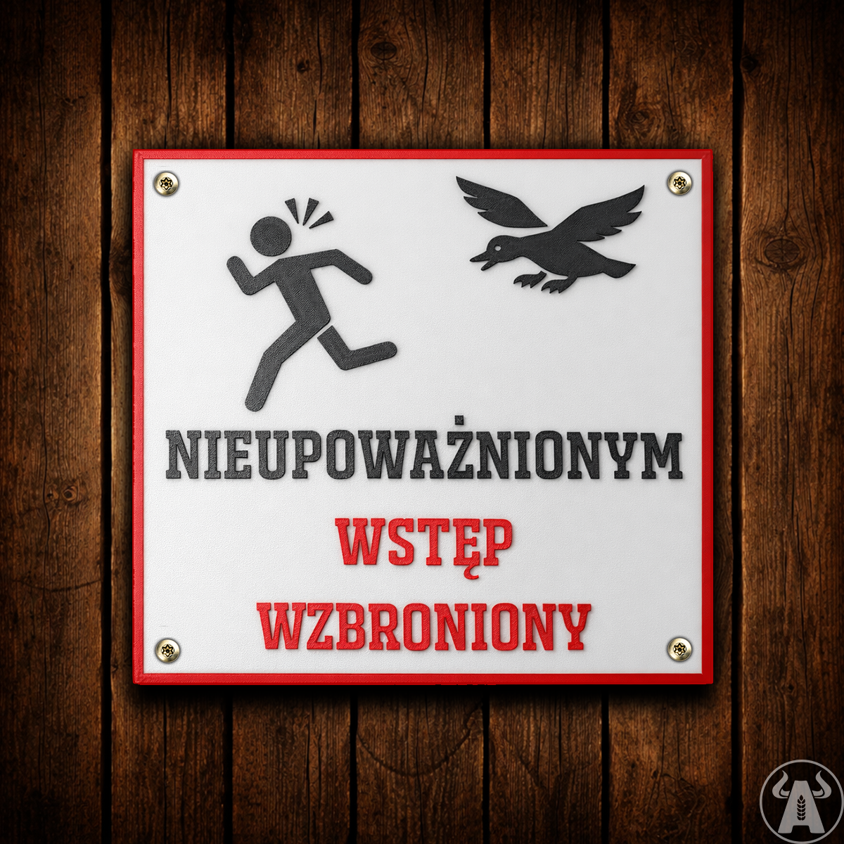 Kaczki niby spokojne… ale jak ktoś wejdzie nie tam gdzie trzeba, to potrafi się zrobić niezłe zamieszanie. Ta tabliczka szybko załatwia sprawę: wstęp tylko dla upoważnionych. Świetna przed wejściem na wybieg, przy stawie albo w miejscu, gdzie chcesz ograniczyć kręcenie się osób postronnych.